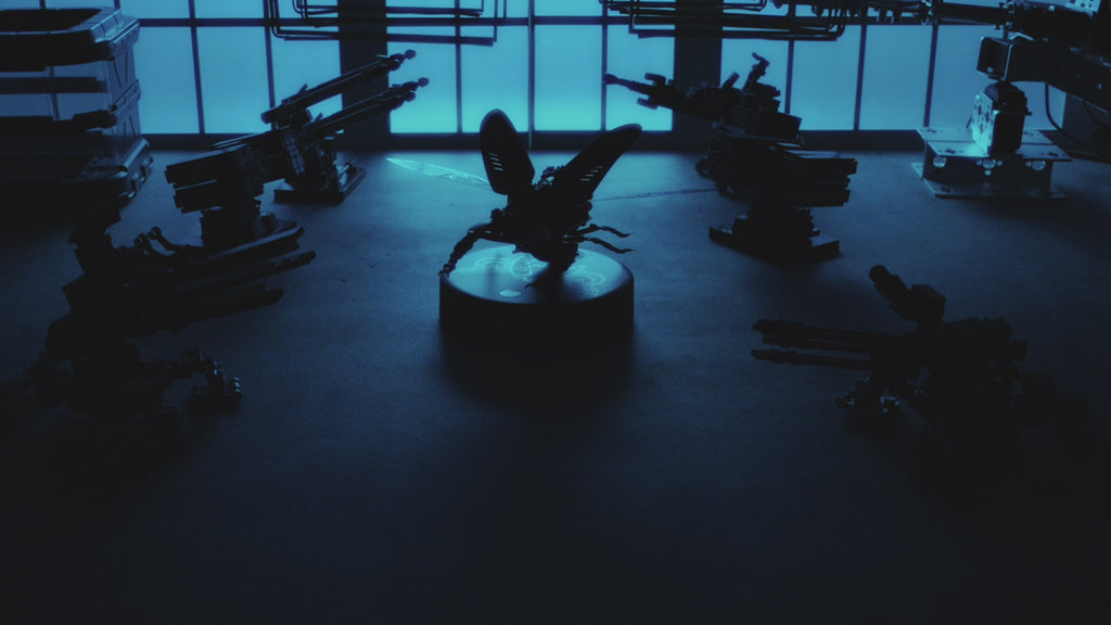 翅は薄いメタルパーツを使用しており、スイッチを入れると12回/秒で動き、独特のしなりで昆虫の羽ばたきを再現!